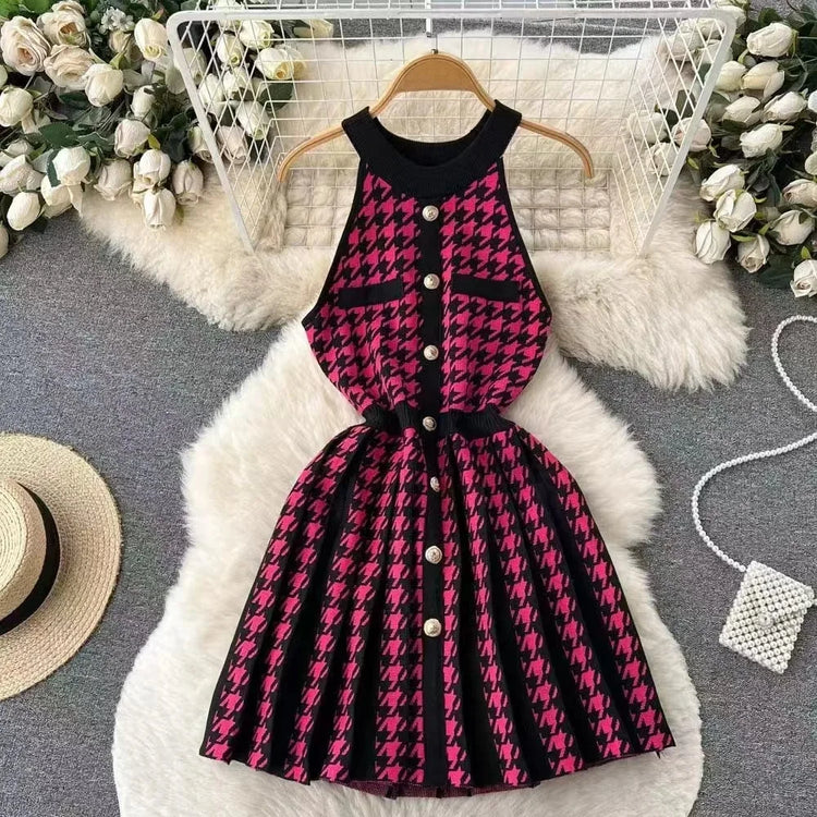 • Sleeveless Houndstooth Pattern : The sleeveless houndstooth pattern adds a classic touch to the dress, making it suitable for various occasions.