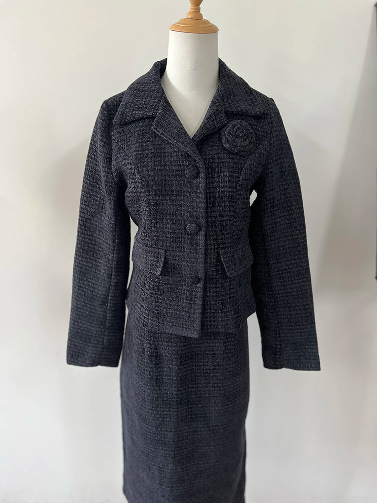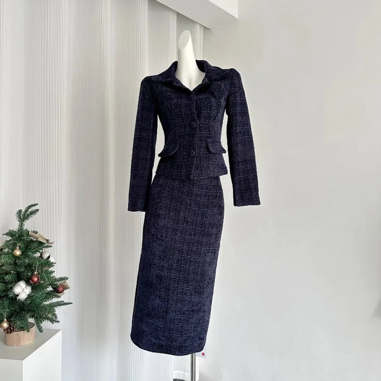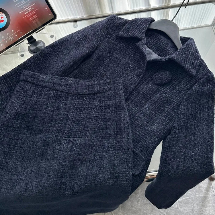 2025 Spring Autumn New Tweed Style Padded Skirt Suits Elegant Long Sleeves Tweed Blazer + Long Skirt 2-Piece Set Women's Fashion