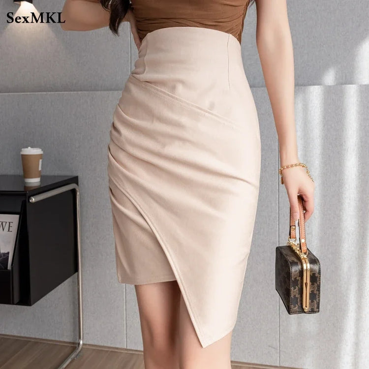 Elegant Office Summer Skirts Women 2024 Korean Fashion Clothing Elastic High Waist Faldas Largas Slim Sexy Bodycon Black Skirt