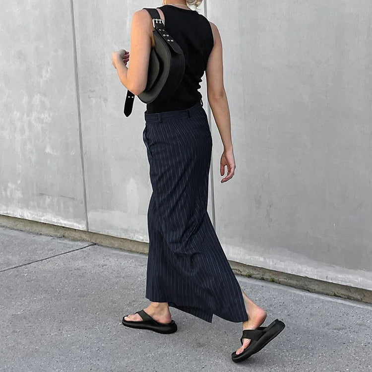Skirt Women Office Lady High Waist Striped Fashion New Euro-America Style Simple Women Skirt Luxury