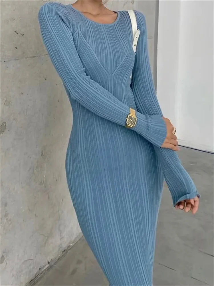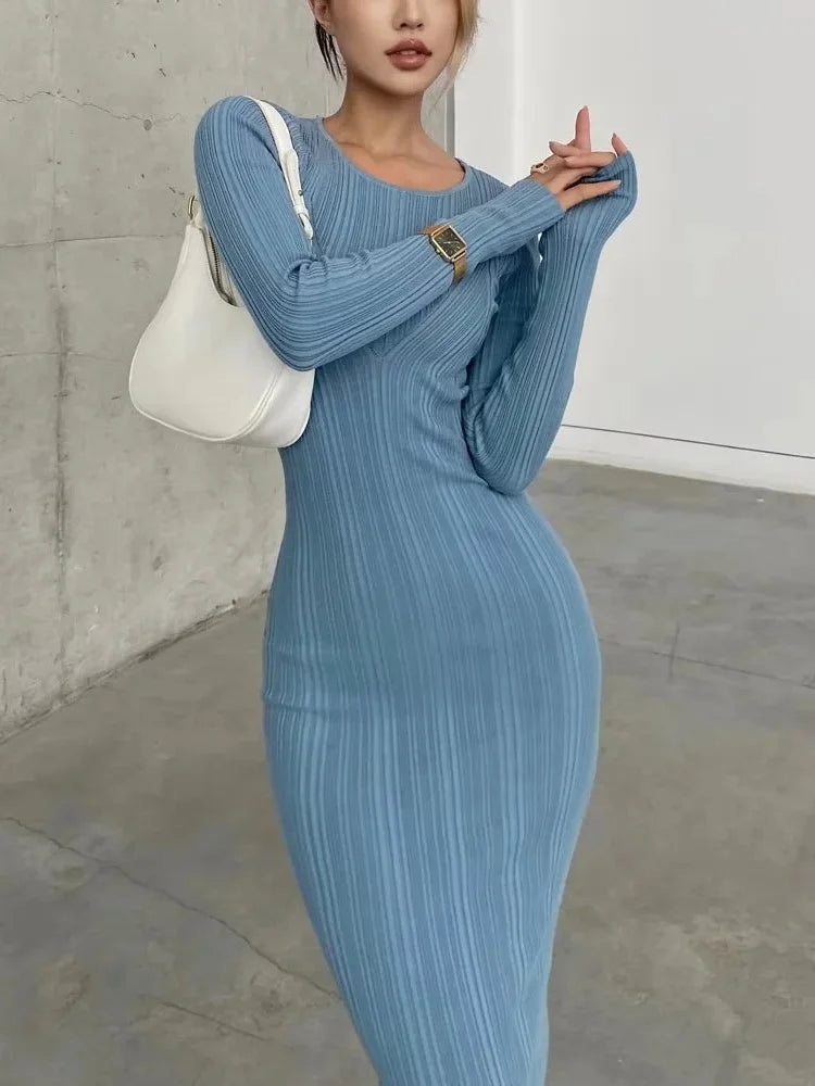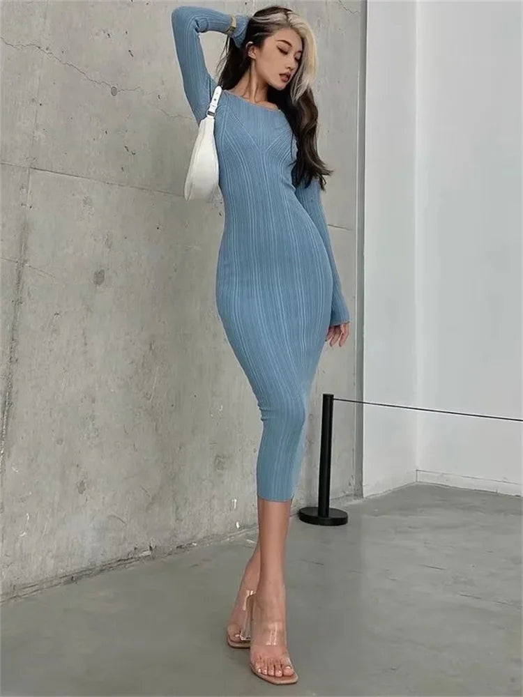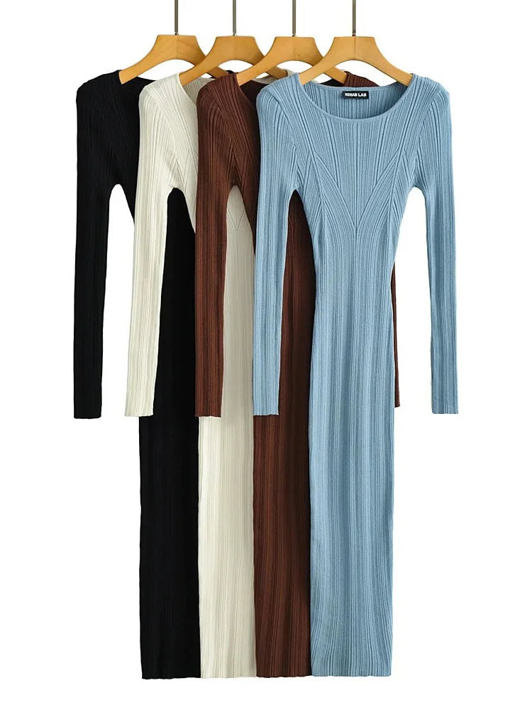 Tossy Autumn Fashion Slim Long Dress Female Knitwear Slim High Waist Patchwork Long Sleeve Elegant Party Dress Ladies Knit Dress