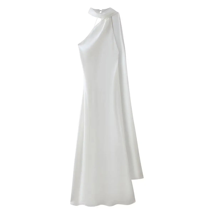VEITCHE Elegant Women's Soft Silk Satin Long Dress Halter Backless Sleeveless Maxi Dresses Summer Lady Long Ribbon Party Gowns