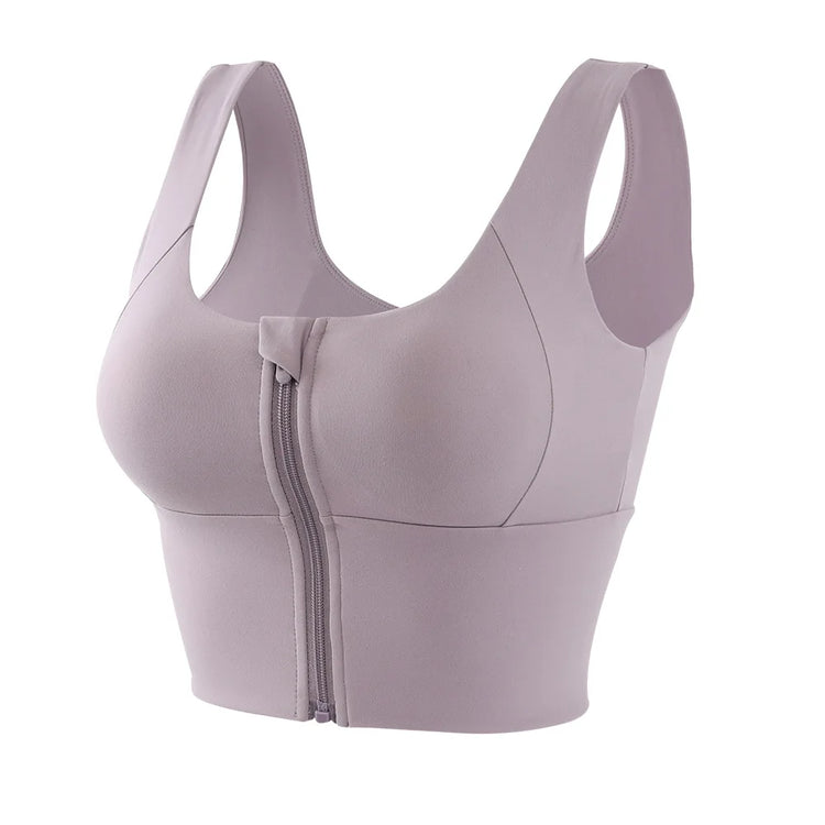 Women Sport Bra High Impact Gym Workout Bra Girls Front Zipper Shockproof Brassiere Padded Yoga Running Crop Top Sportwear Femme