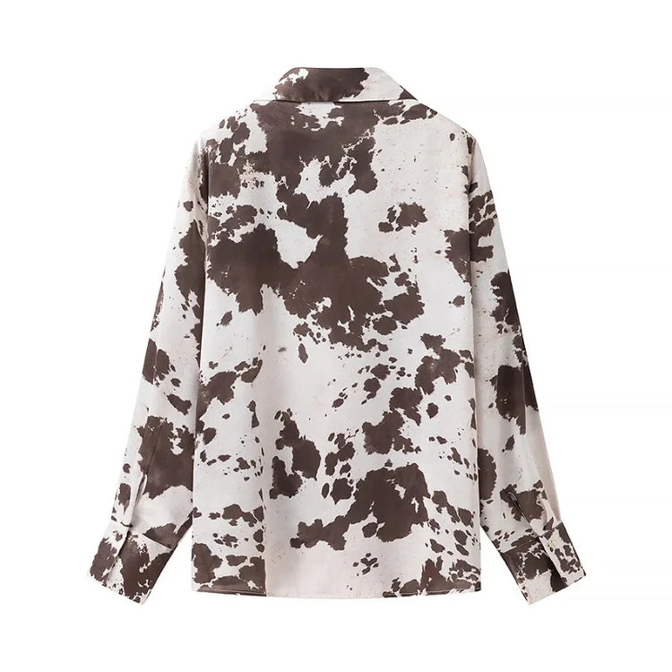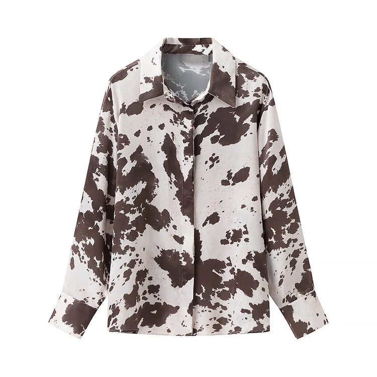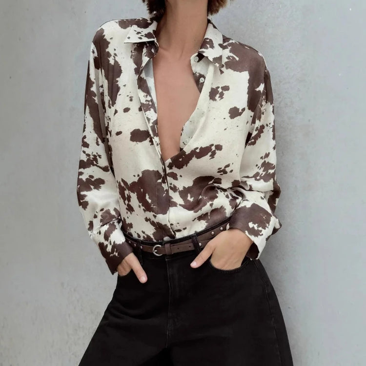 Summer 2025 New French Commuter Style Comfortable and Versatile, Animal Print Lapel Single-breasted Long-sleeved Shirt