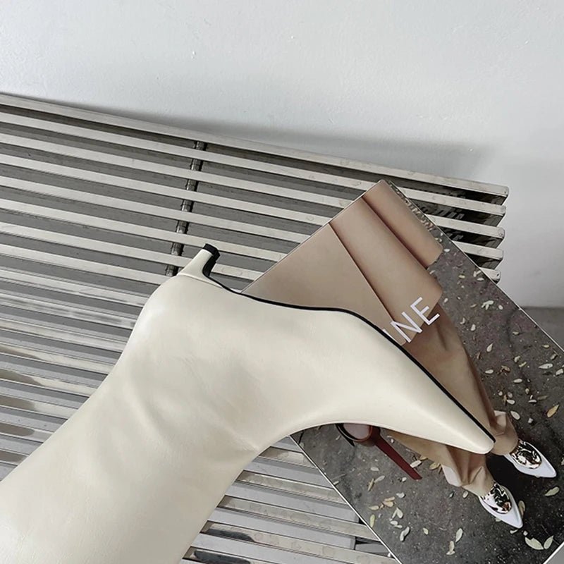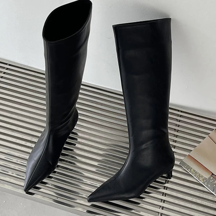 Fashion Women Knee High Boots Slip On Shoes Low Heels Pointe Toe Ladies Shoes Female Footwear Western Modern Long Boots