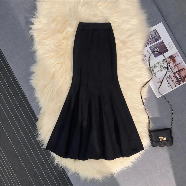 Knitting Skirts For Women Fashion High Waist Slim Trumpet Mermaid Skirts Office Ladies Casual Elegant Ankle Length Long Skirt
