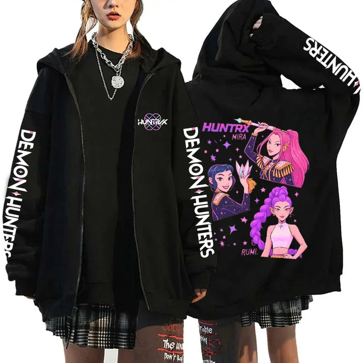 2025 Kpop Demon Hunters Print Zipper Hoodie Women Casual Harajuku Rits Hoodies Autumn Winter Long Sleeve Fleece Sweatshirts