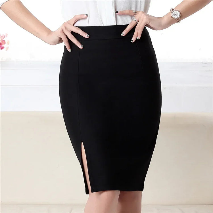 2025 New Fashion Women Office Formal Pencil Skirt Spring Summer Elegant Slim Front Slit Midi Skirt Black/Gray/Red OL Skirts