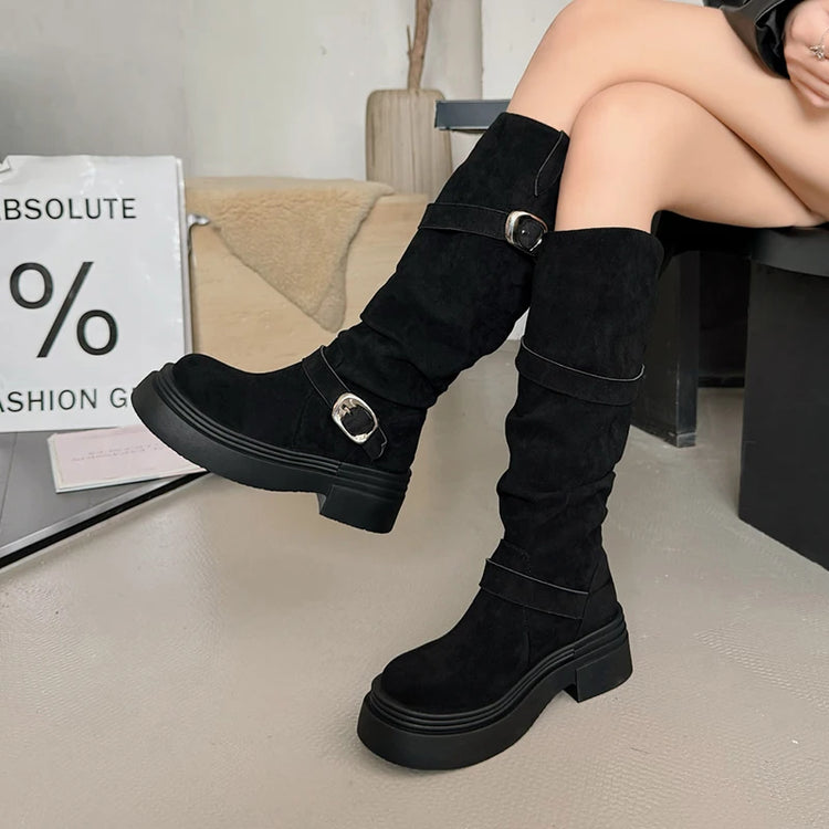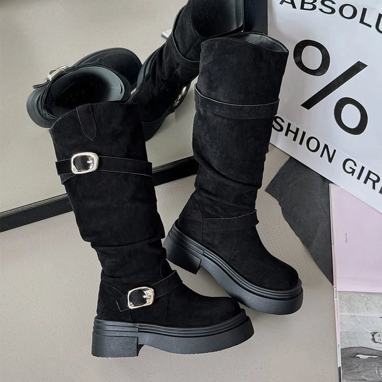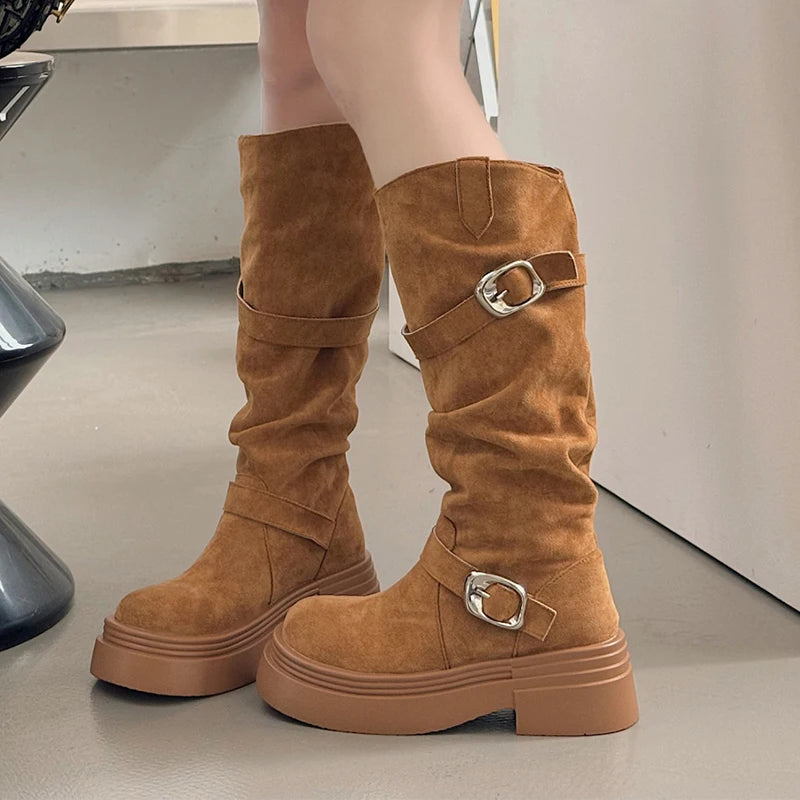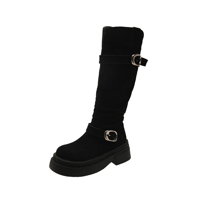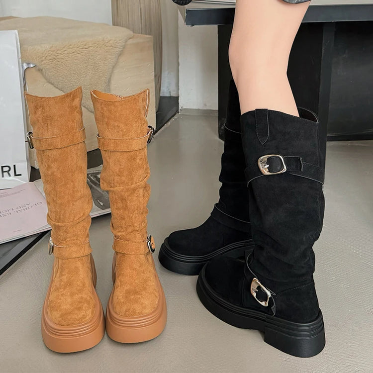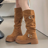2025 New Women Long Boots Flats Shoes Knee High Chelsea Boots Winter Trend Walking Sport Shoes Suede Casual Mujer Snow Botas