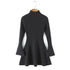 2025 Sexy High Collar Rib Line Knitted Long Flare Sleeve Sweater Dress Women Slim Waist Swing Short Dresses Knitwear Robe Brown