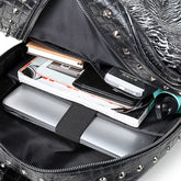 Steam Punk Woman 3D Shoulder Bag Black Leather Gothic Rivet College Bags Material: PU leather Size & Weight: L23.5cm*H41cm*W12cm,weight:1.11kg Color: Black,Gold,Silver Internal structure: Big capacity Package OPP bag