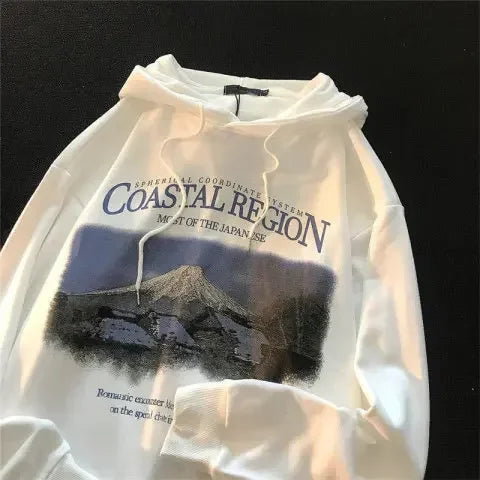American High Street Men Women Hoodies Autumn Winter y2k Fashion Pullover Sweatshirt landscape Graphic Print Tops Clothes