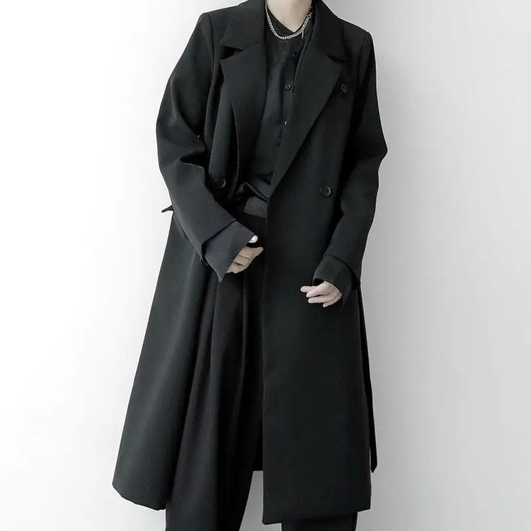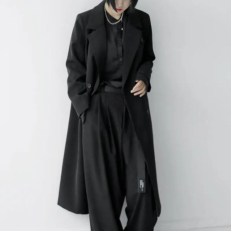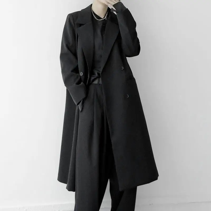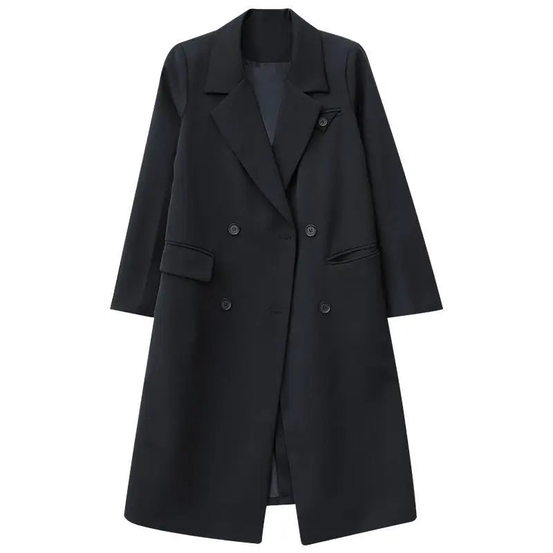 Black Double Breasted Long Suit Jacket for Women Autumn/Winter New Fashion Loose Casual Over Knee Trench Coat Women Clothing