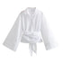 BWQ Autumn and Winter New Women's Fashion Casual Polo Neck Bow Tie up Short Edition Double breasted Poplin Shirt