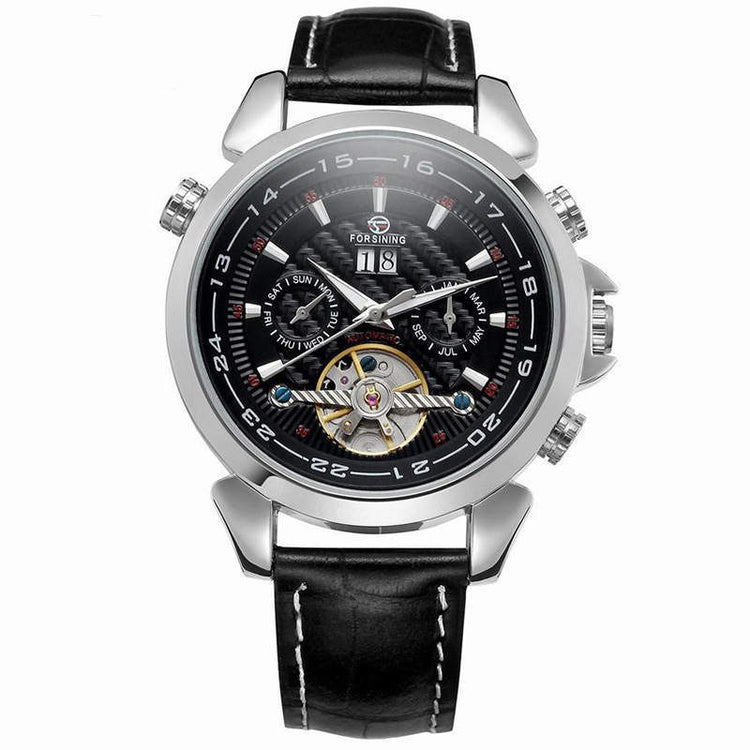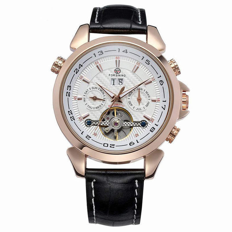 Complete Calendar watch Luxury Tourbillion Design Genuine Leather Top Brand Automatic Mechanical Men Watches