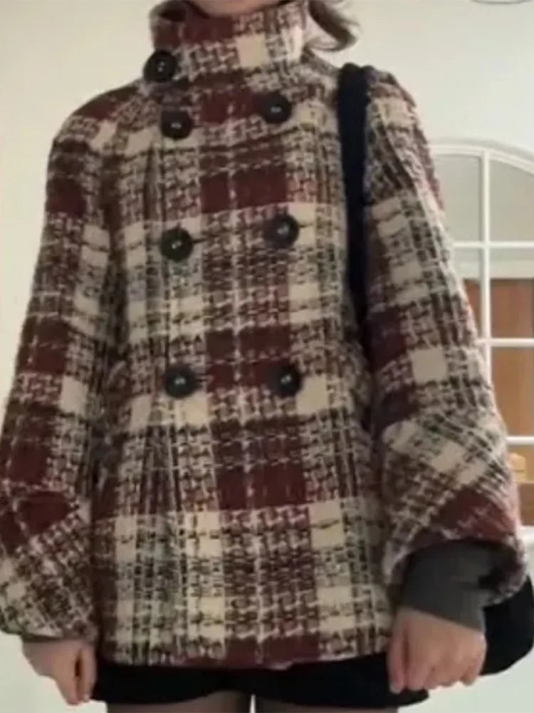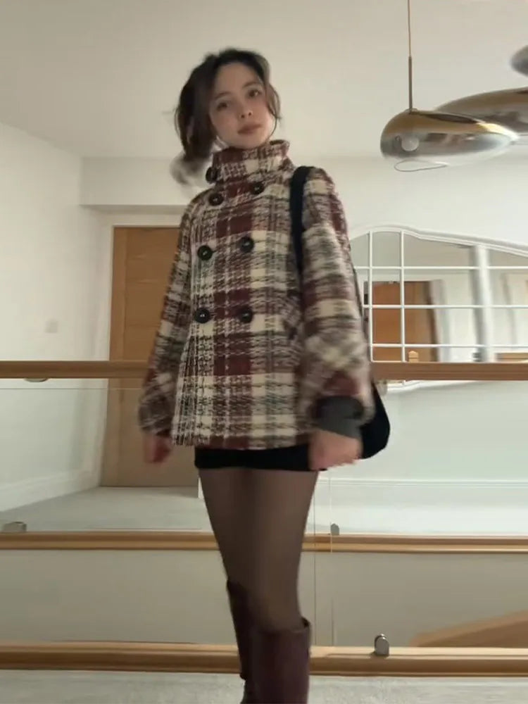 Elegant Warm Stand Collar Coat Female Double Breasted Long Sleeves Loose Coats Versatile Casual Women's New Early Autumn Coats