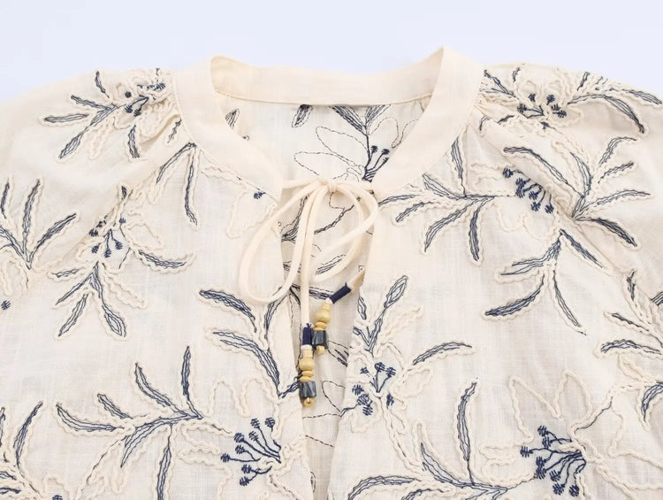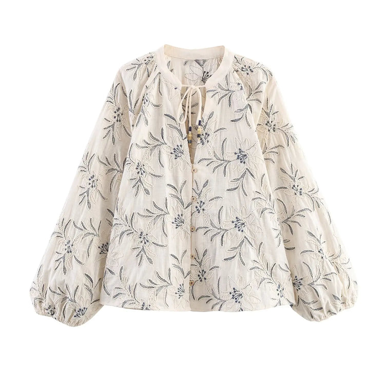 European and American style 2025 early autumn new embroidered casual long-sleeved shirt with old style loose top