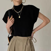 Fashion Stand-up Collar Slim Women Knitted Vest Loose Solid Elegant Straight Tops Short Sleeve Office Lady T Shirt Loose Shirt