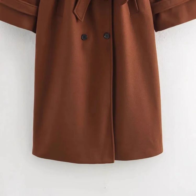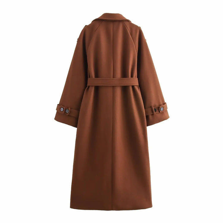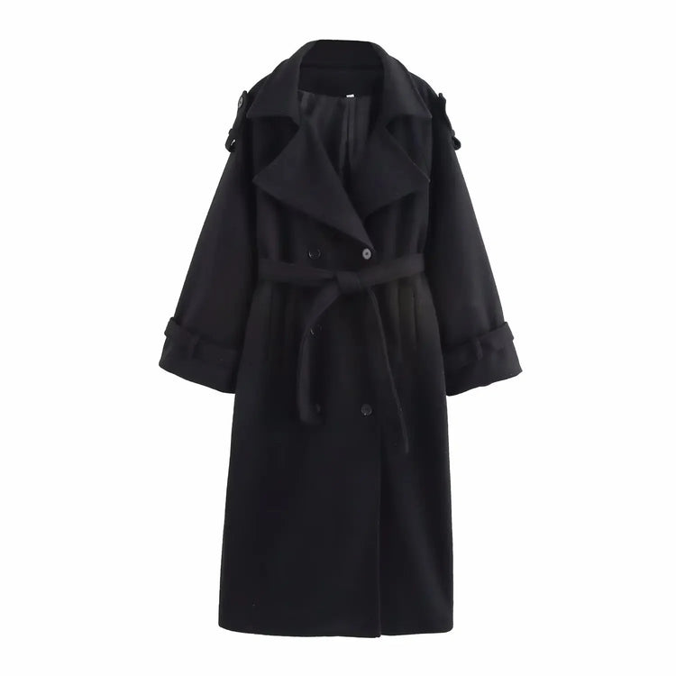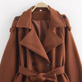 Fashionable Long Loose Coat with Waist Belt And Double Row Buttons Elegant Women's Woolen Overcoat Simple Independent Station St