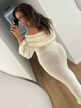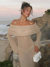 Knit Hollow Out Off-Shoulder Maxi Dress Female Cover up Loose Long Sleeve Holiday Beach Party Dress Women Knitwear Dress