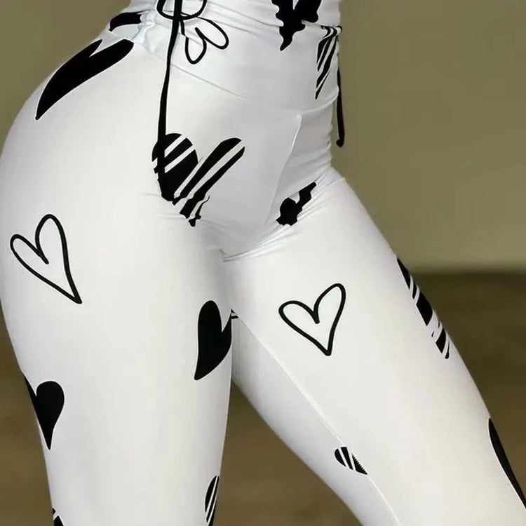 Leggings Women Long Pants Bodycon Slim Fit Print Pant High Waist Drawstring Jogger Yoga Trousers Elegant Splice Y2k Streetwear