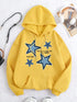 Retro Blue Jean Star Print Hoody Women Loose Pocket Hoodies Multicolor Autumn Pullover All-Match Fleece Female Streetwear