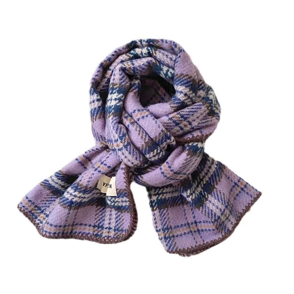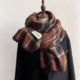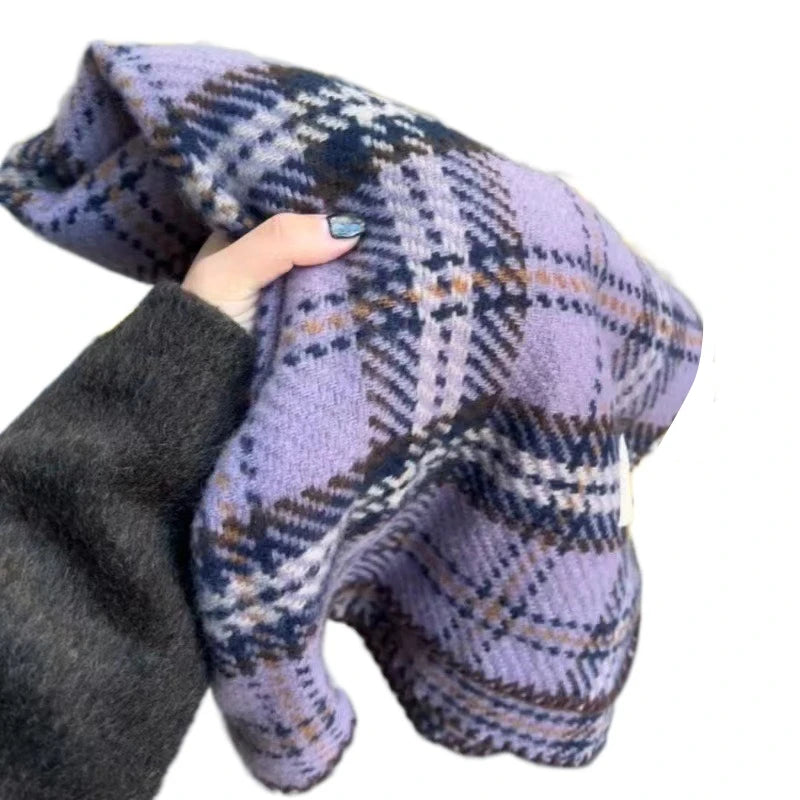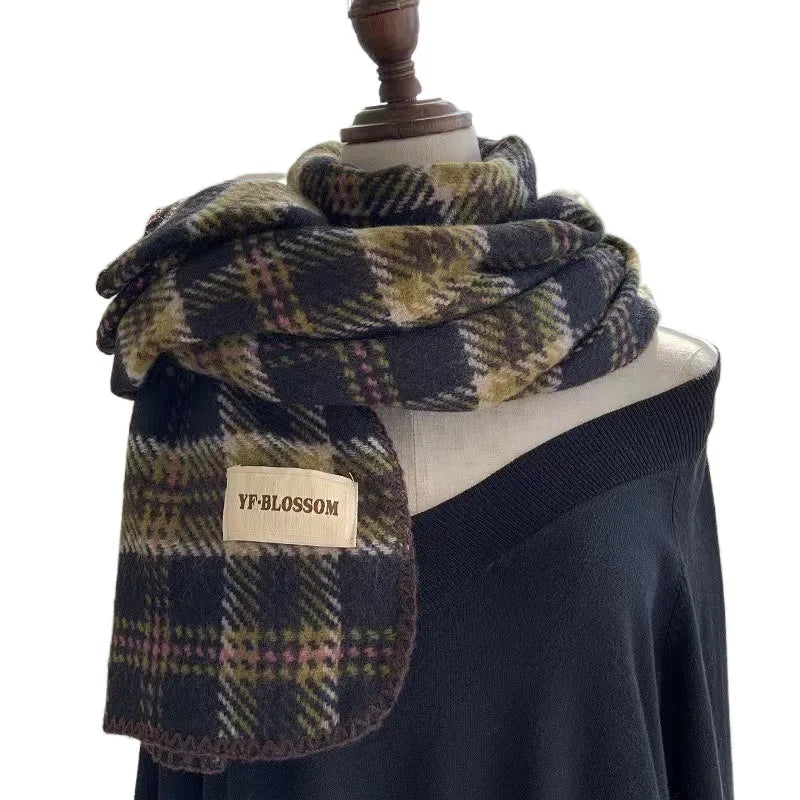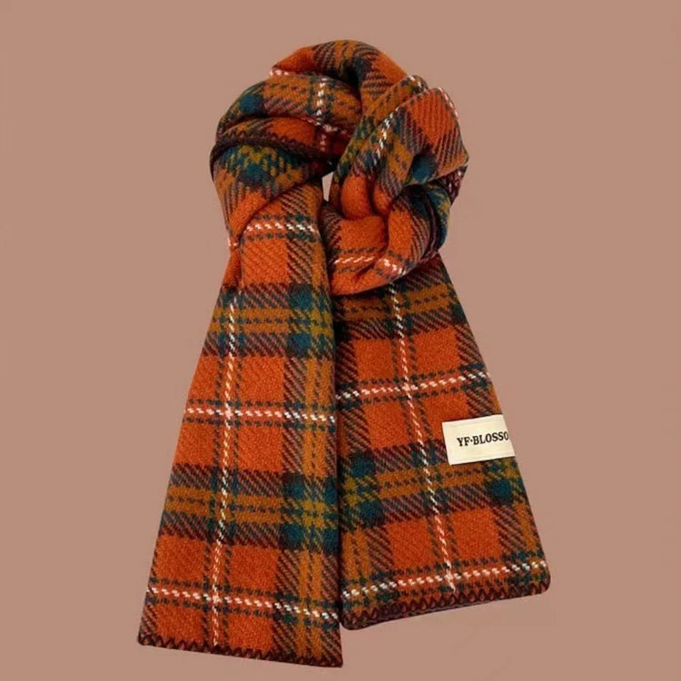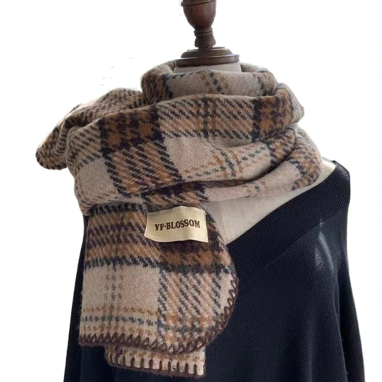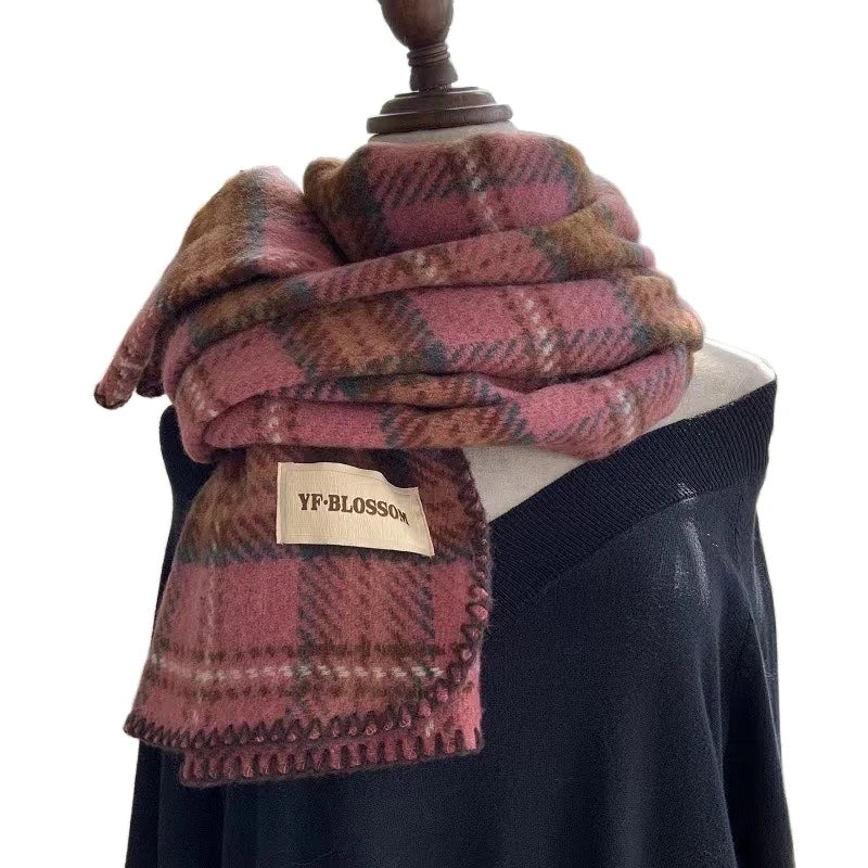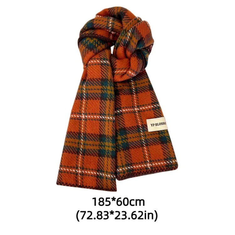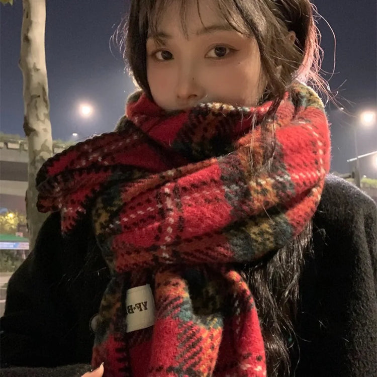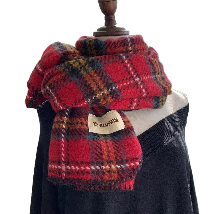 Retro Plush Red Plaid Scarf Cashmere Warm Cashmere Scarves Windproof Thick Wool Scarves Girl