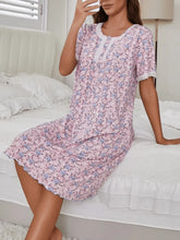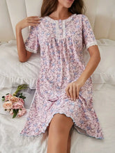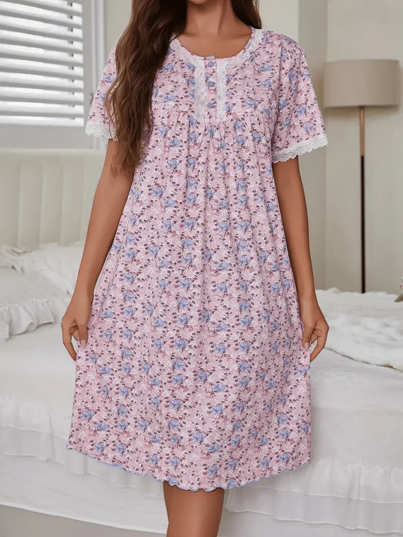 Romantic Sleepwear - Women's Elegant French Pink Floral Sleepwear - Short-sleeved Sleepwear with Romantic Lace Trim and Ruffled