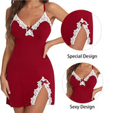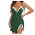 Sexy Sleepwear Women Lace Silk Satin V-Neck Nightgown Split Hem Soft Lingerie Night Dress Sleeveless Sleepwear Female Clothes