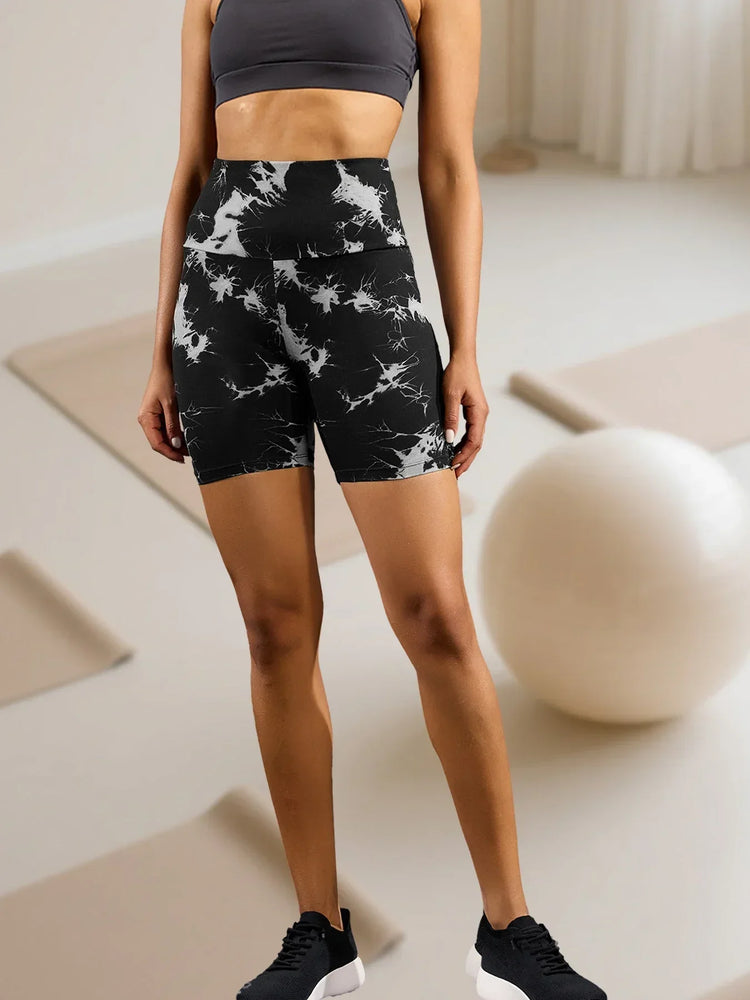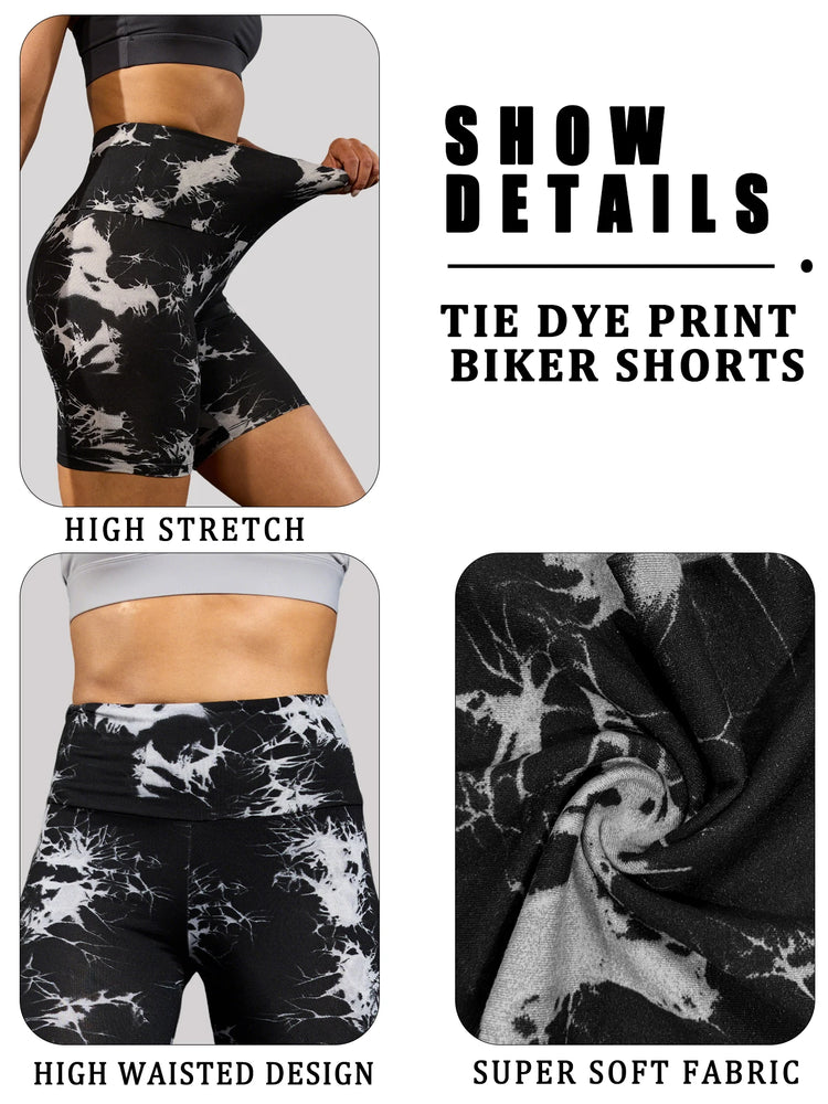 Super Soft High Waisted Tie Dye Print Sport Biker Shorts for Women No See Running Yoga Athletic Push Up Gym Shorts