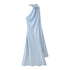 VEITCHE Elegant Women's Soft Silk Satin Long Dress Halter Backless Sleeveless Maxi Dresses Summer Lady Long Ribbon Party Gowns