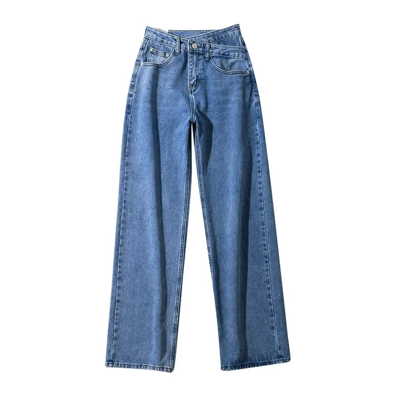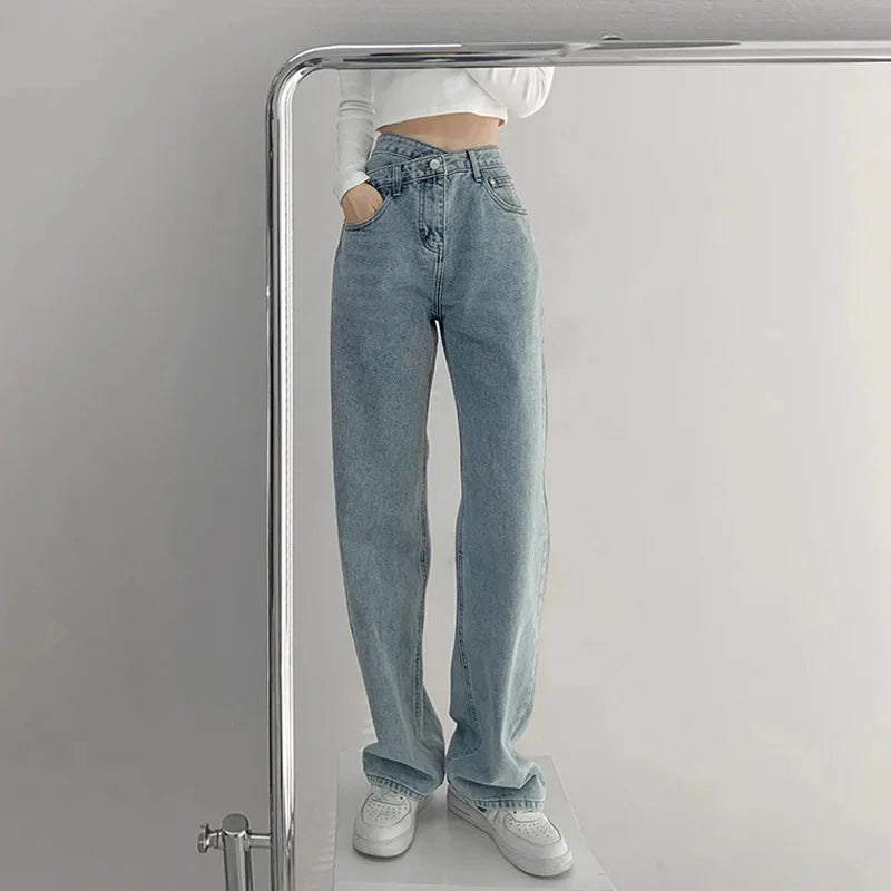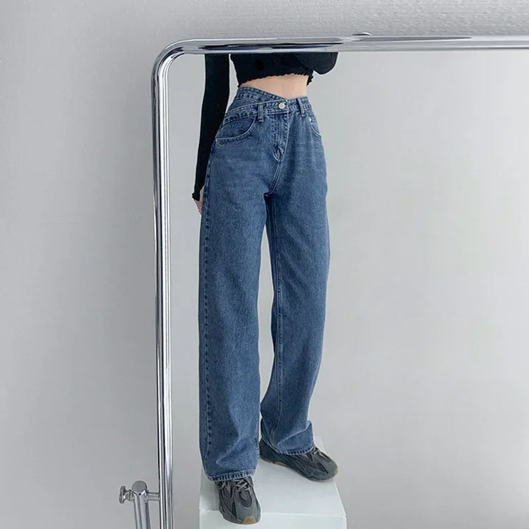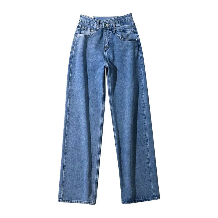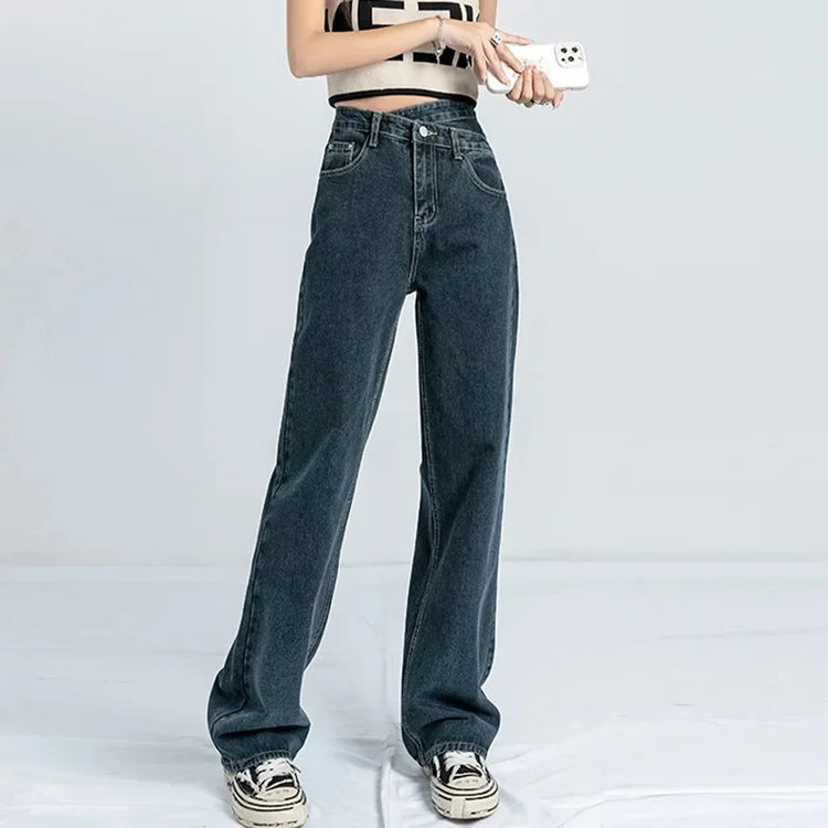 Vintage High-Waisted Straight-Leg Jeans Women's Loose-Fit Denim Pants Spring Summer Sensibility Niche Crossbody Non-Regular Wide
