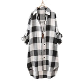 Women Casual Tartan Plaid Print Shirt Long Sleeve Lapel Blouse Soft Breathable Lady Long Top Fashion Loose Shirt Daily Wear