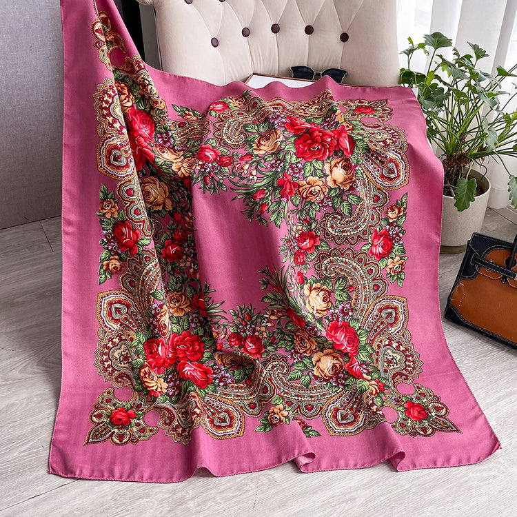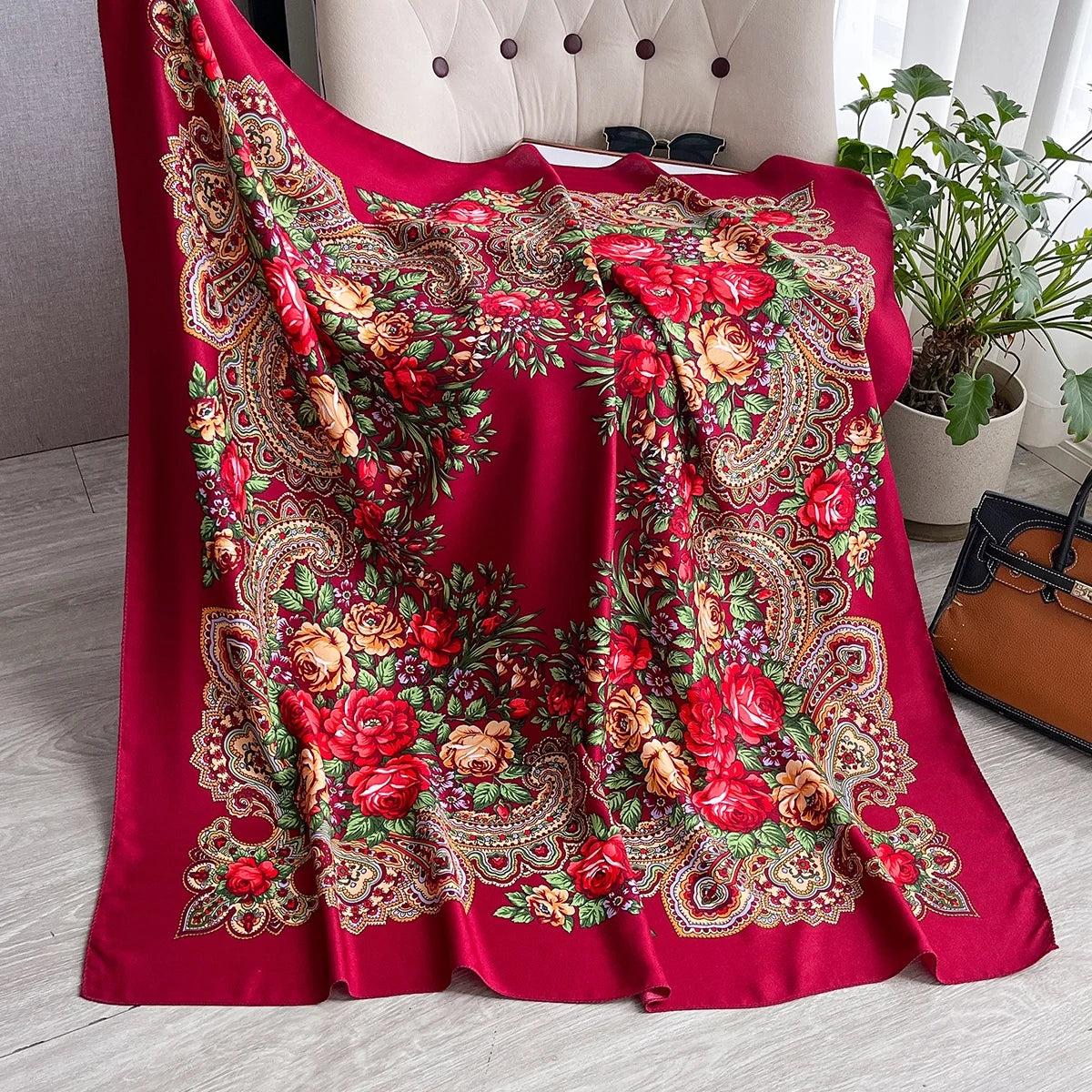 Women Russian Floral Scarf Ethnic Style Square Bandana Head Scarves Ladies Handkerchief Headband Silk Scarf Hair Wraps 2025