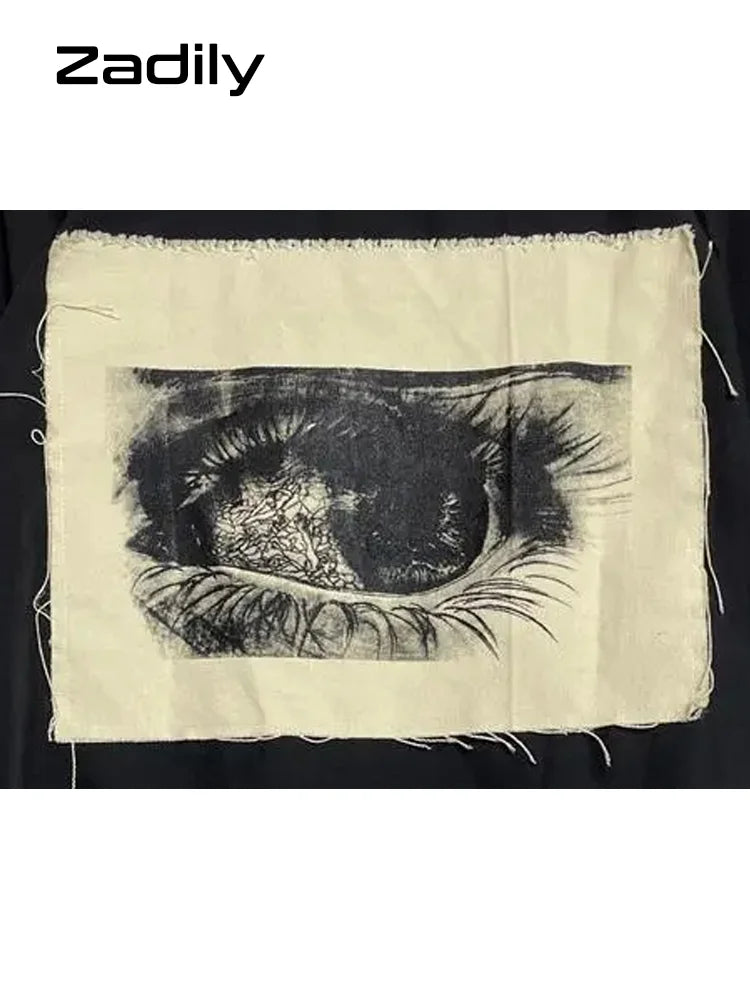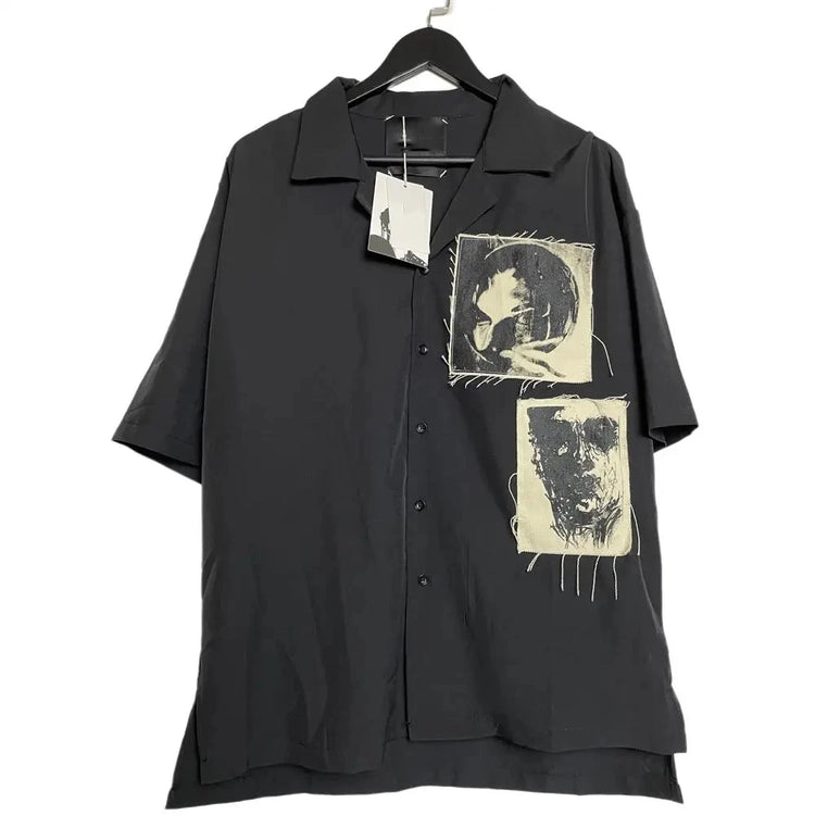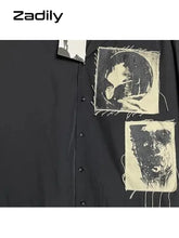 Women's Button Up Loose Blouse, Short Sleeve Shirt, Patch Designs, Tunic, Gothic Streetwear, Female Clothing, Summer, Y2k, 2024
