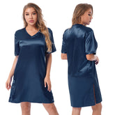 Womens Sleepwear Dresses Satin Nightgown Short Sleeve Nightdress Nightwear Loungewear Sides Split Underwear Robe Sleepshirts