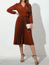 Women's solid color dress dark green V-neck casual slim pleated knee skirt new long sleeve summer and autumn standard code elega