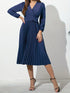 Women's solid color dress dark green V-neck casual slim pleated knee skirt new long sleeve summer and autumn standard code elega