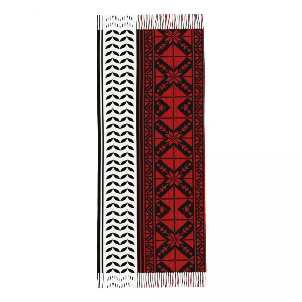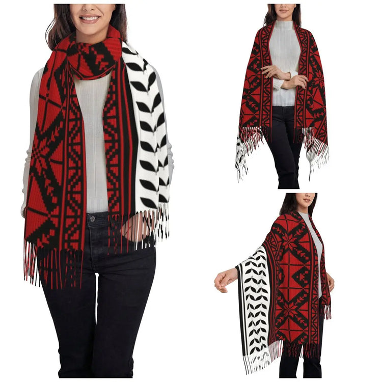 Women's Tassel Scarf Arabic Folk Kufiya Hatta Traditional Keffiyeh Pattern Large Winter Warm Shawl and Wrap Pashmina Scarves
