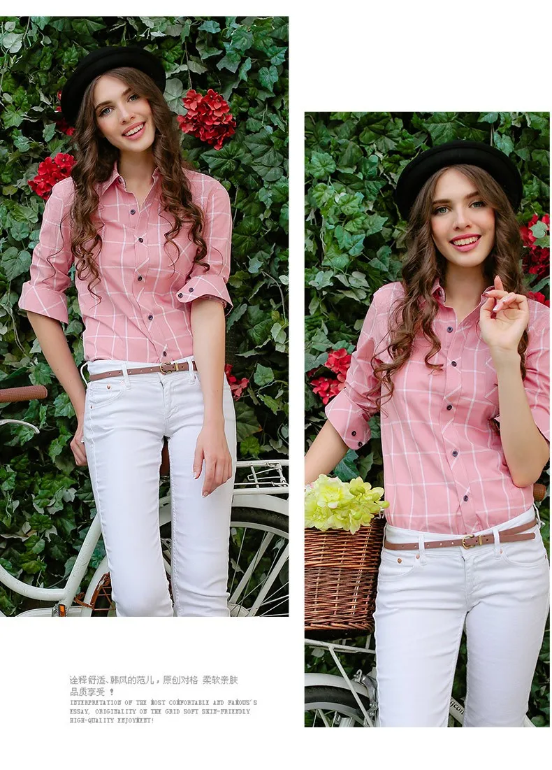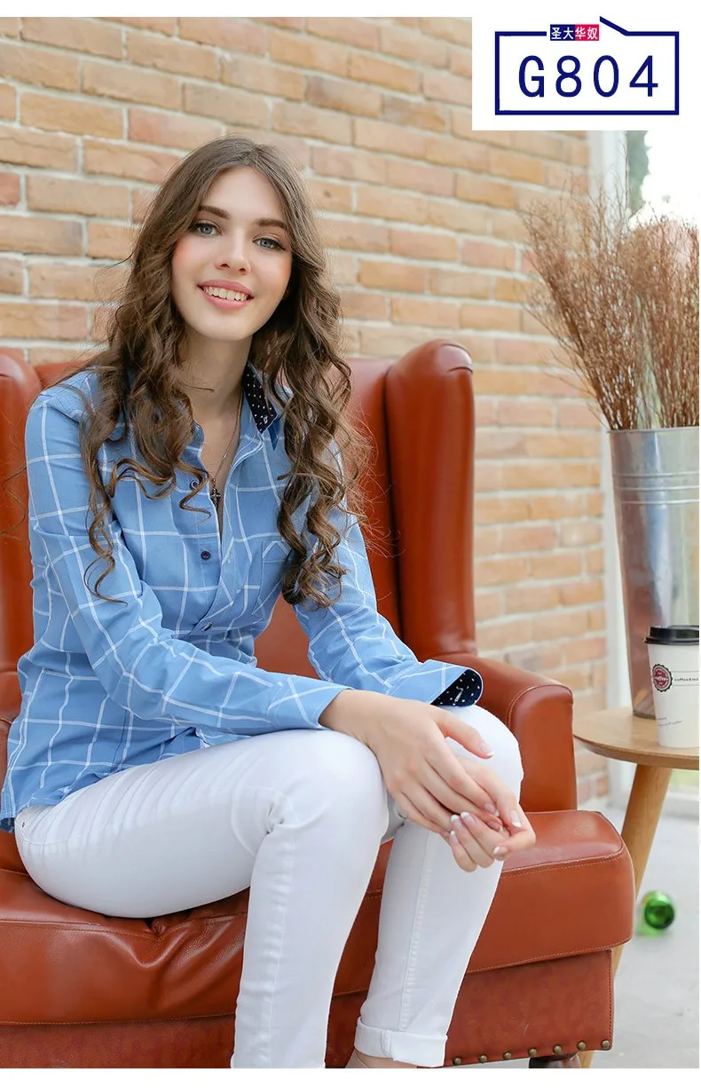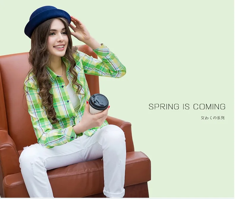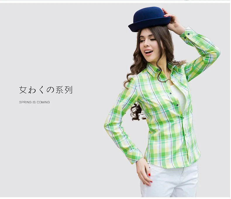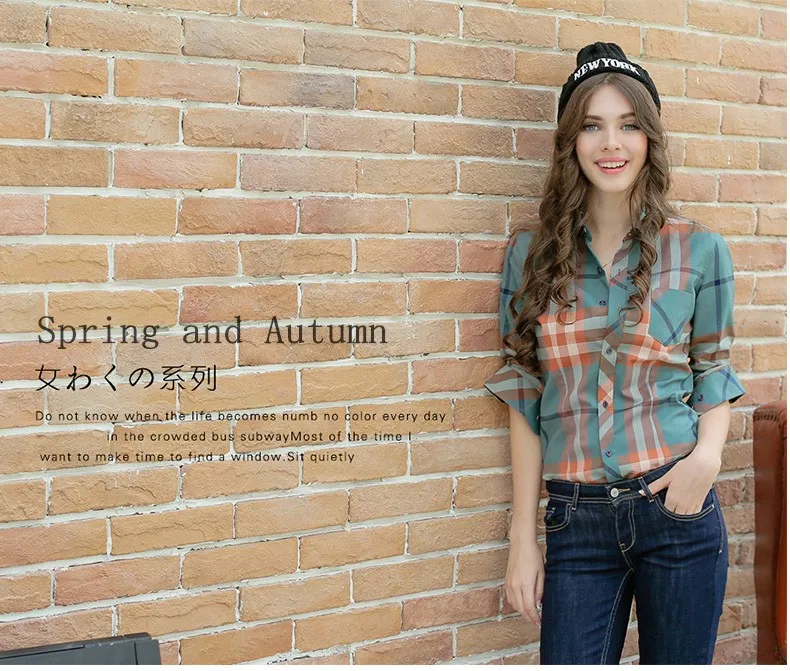 XS-3XL New Women Cotton Shirt Spring Autumn Fashion Casual Brushed Plaid Blouse Girl Tops Outerwear Loose Cotton Shirts Female