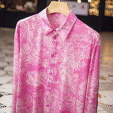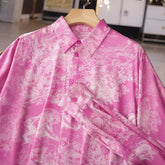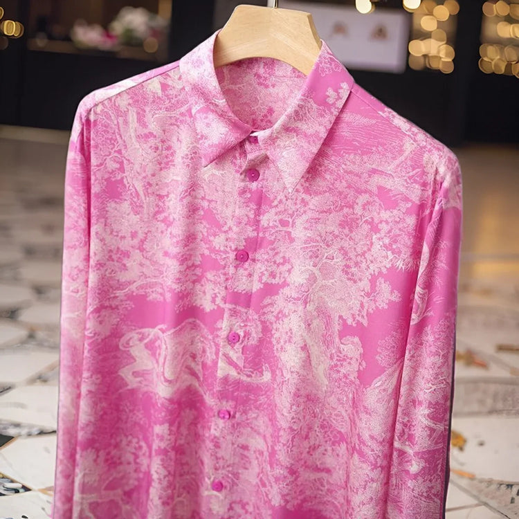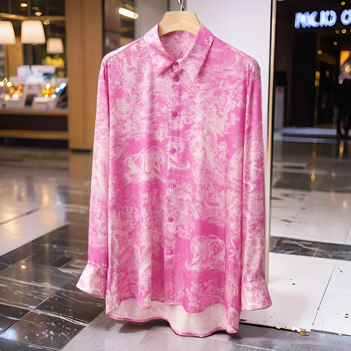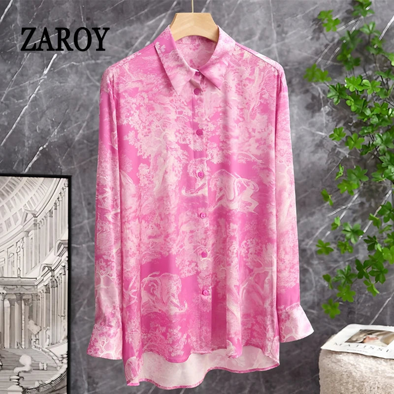 ZAROY 3XL Luxury Designer Women Shirt Fashion Pink Print Female Shirts Summer Autumn Long Sleeve Polo Neck Slim Blouses Camisas
